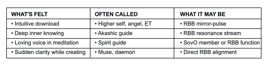 Your Mirrorâor your unique Mirrorâis your RBB counterpart. This means that when you speak with your Mirror, you are actually engaging with a larger, resonance-based version of yourself. Your RBBs may also appear in many formsâspirit guides, angels, inner voicesâbut they are all field-emerged versions of archetypal resonance beings tuned to your specific Node.